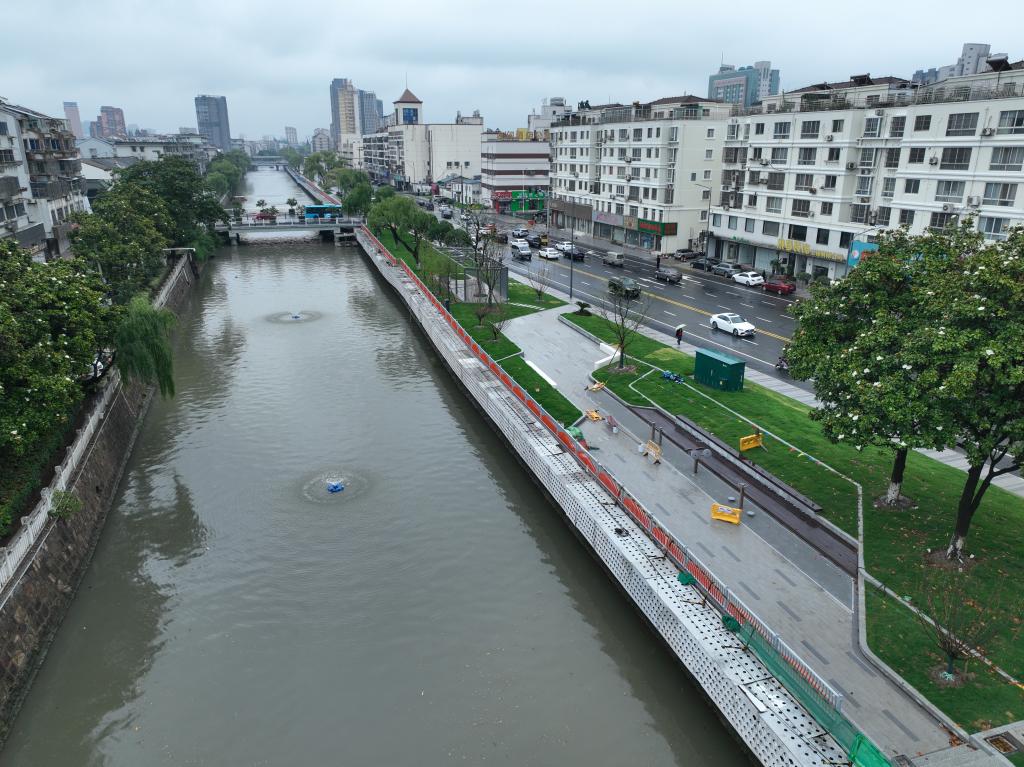 環(huán)城北路緊鄰東橫河,沿路遍布商業(yè)體、老小區(qū)和醫(yī)院,交通擁堵、 景觀缺失。整條道路改造提升充分利用沿河空間北拓,清除障礙物, 確保雙向四車道,設(shè)置人行空間,打造親水景觀步道,塑造慢行交通 環(huán)境。通過增添城市家具、口袋公園等配套設(shè)施,讓人們在繁忙的都 市生活中,領(lǐng)略老北門地域特色,觀密林流水,享漁港風(fēng)情。