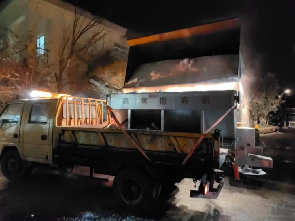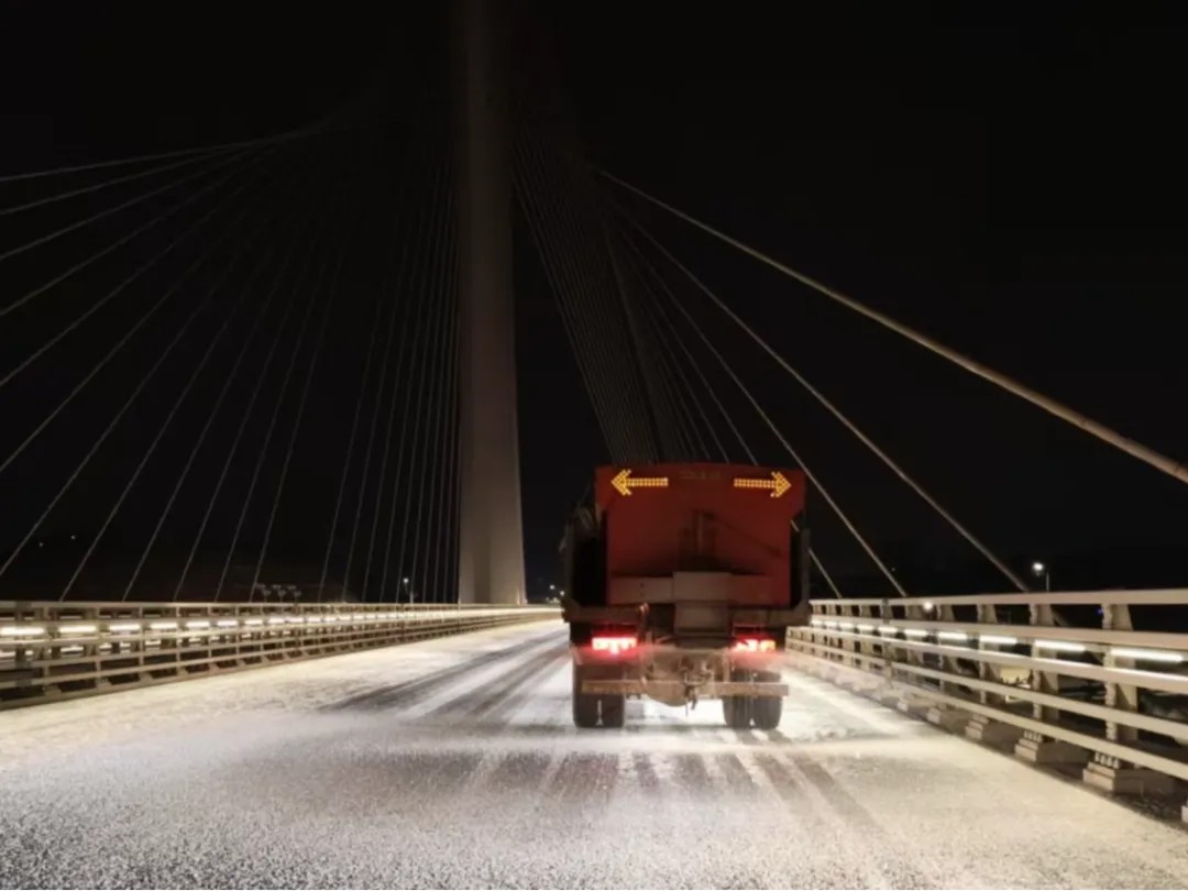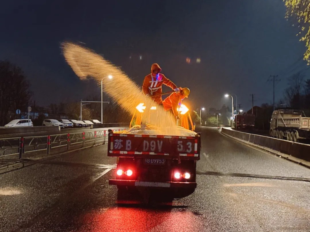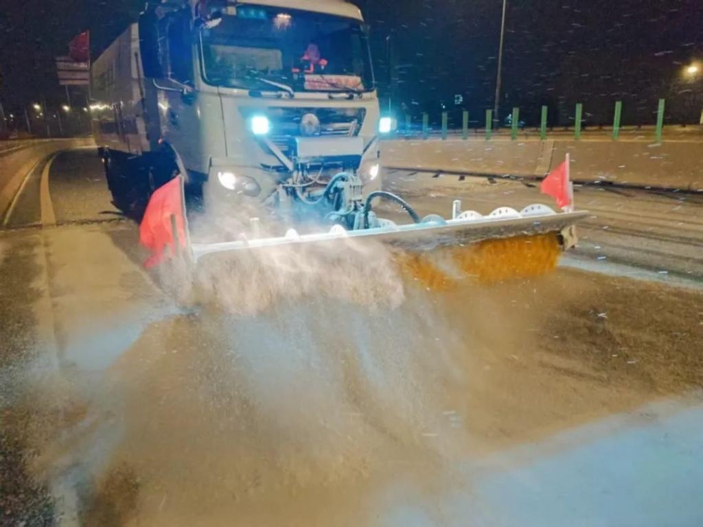 截至20日6點(diǎn),暨陽公司掃雪除冰出動(dòng)巡查、應(yīng)急處置人員78人,車輛機(jī)械32臺(tái),大型撒布機(jī)2臺(tái),小型撒布機(jī)6臺(tái),滾掃2臺(tái),撒布工業(yè)鹽43噸,融雪劑18噸。