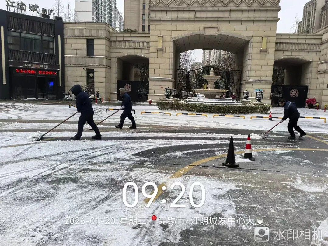 資管公司為保障忠義街區(qū)、江陰城發(fā)中心大廈、城發(fā)智谷及江陰城發(fā)金茂嘉悅酒店等重點(diǎn)區(qū)域及責(zé)任場所的通行安全與正常秩序,組織力量及時(shí)清理了道路、出入口及重點(diǎn)部位的積雪積冰,并鋪設(shè)防滑墊、設(shè)置提示,有效消除了安全隱患,確保了各區(qū)域安全有序運(yùn)行。